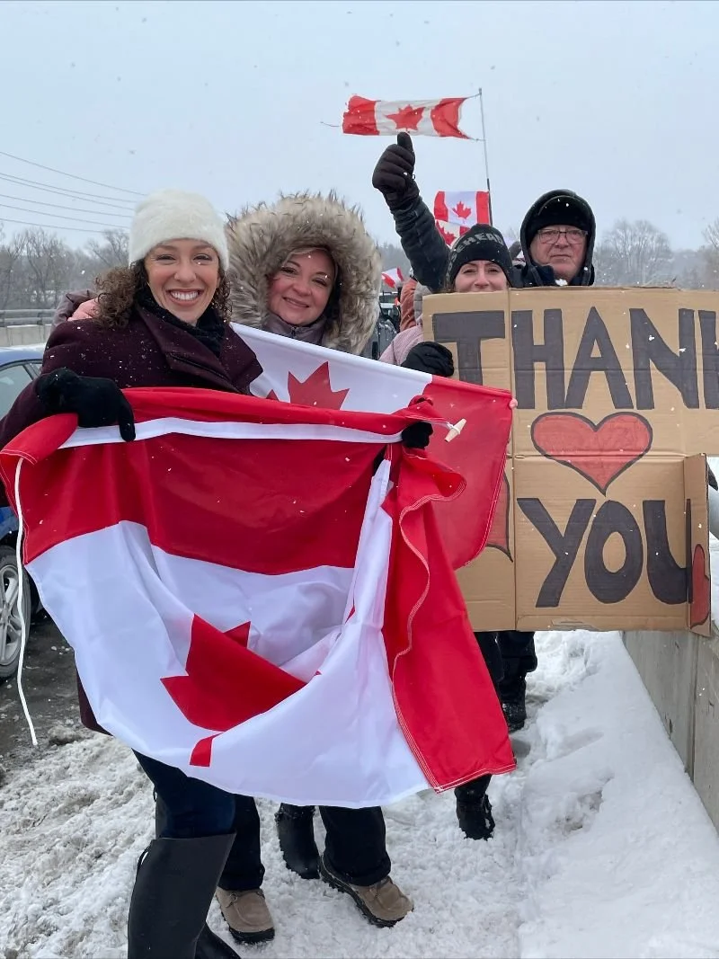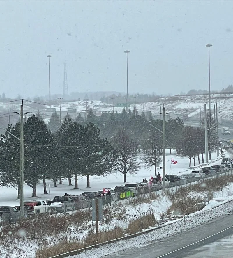 At every overpass and at highway exits, Canadians were huddled to support truckers and those heading to Ottawa.